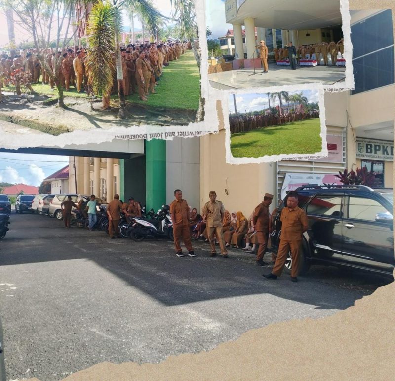 BOLMUT — Suasana apel pagi di lingkungan Pemerintah Kabupaten Bolaang Mongondow Utara, Senin (8/4/2025), diwarnai dengan pemandangan tak sedap.